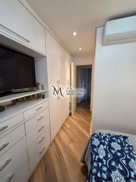 A suíte possui armários planejados e ar-condicionado, garantindo conforto em todas as estações. O segundo dormitório também conta com excelentes armários, ideal para quarto, escritório ou quarto de hóspedes.