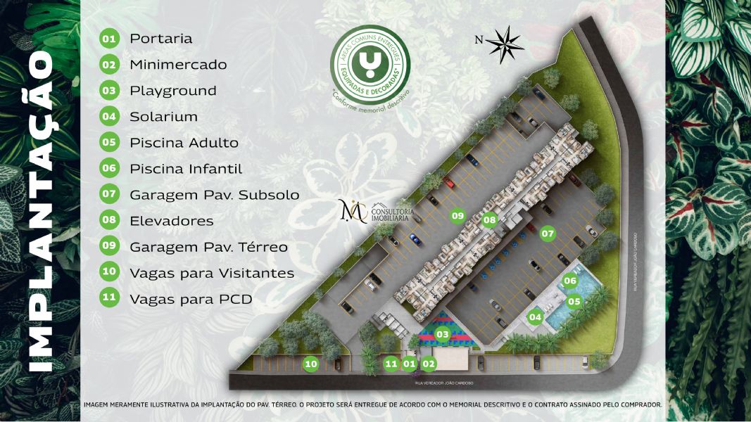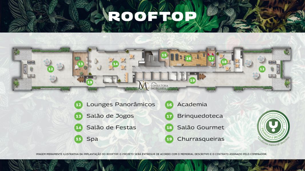 AcademiaAcesso para deficientesÁrea de LazerBicicletárioBrinquedotecaElevadorElevador de serviçoEspaço fitnessEspaço verdeGerador elétricoPiscinaPiscina infantilSala de GinásticaSalão de festasSolariumSpa