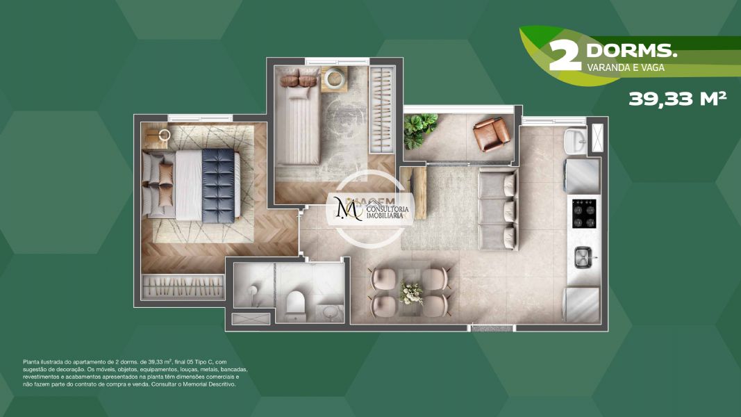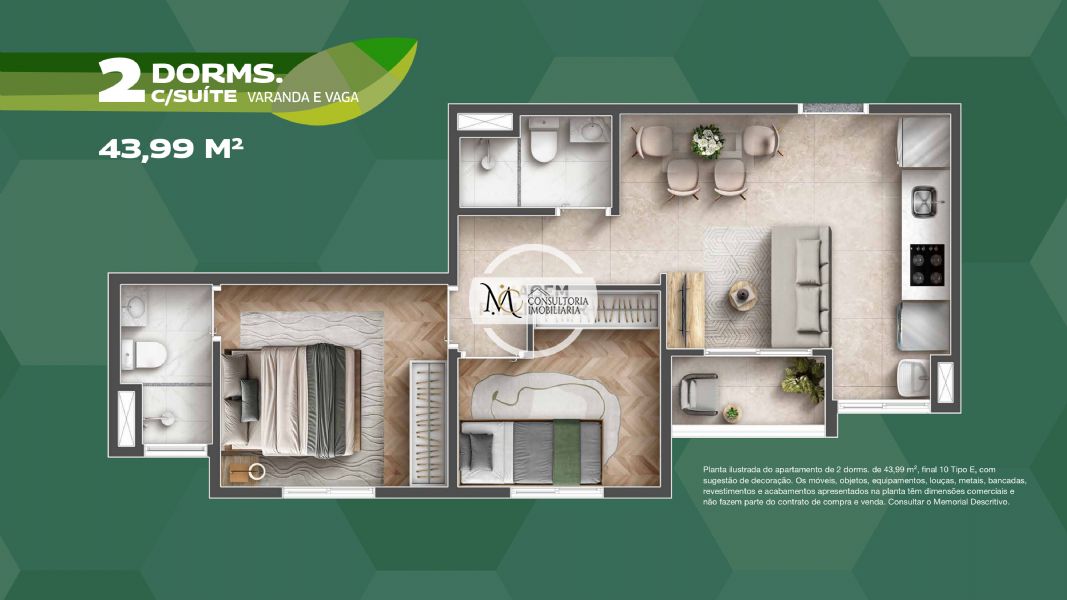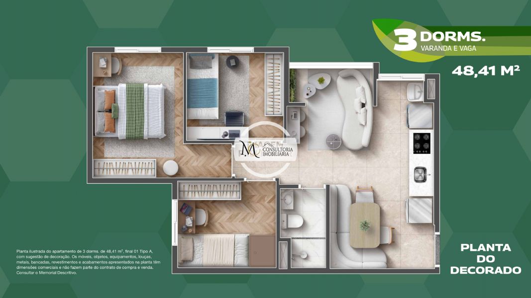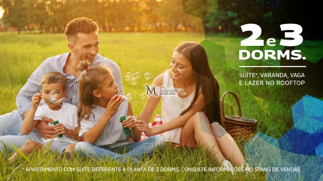 Detalhes: 2 e 3 dormitórios com vaga e varanda, Área de lazer no Rooftop